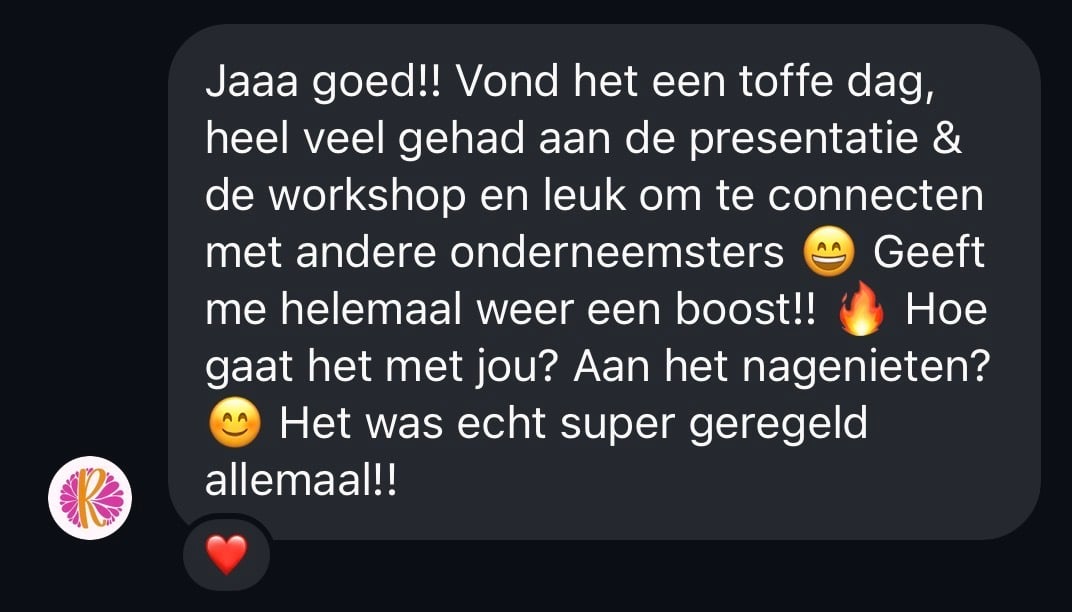Wat een inspirerende dag was het op een top locatie! Iris zorgde voor een dag vol inspiratie, inzichten en daar hoorde ook kwetsbaarheid bij, zo mooi! Ik ging met nieuwe inzichten naar huis én een groter netwerk van vrouwelijke onderneemsters.